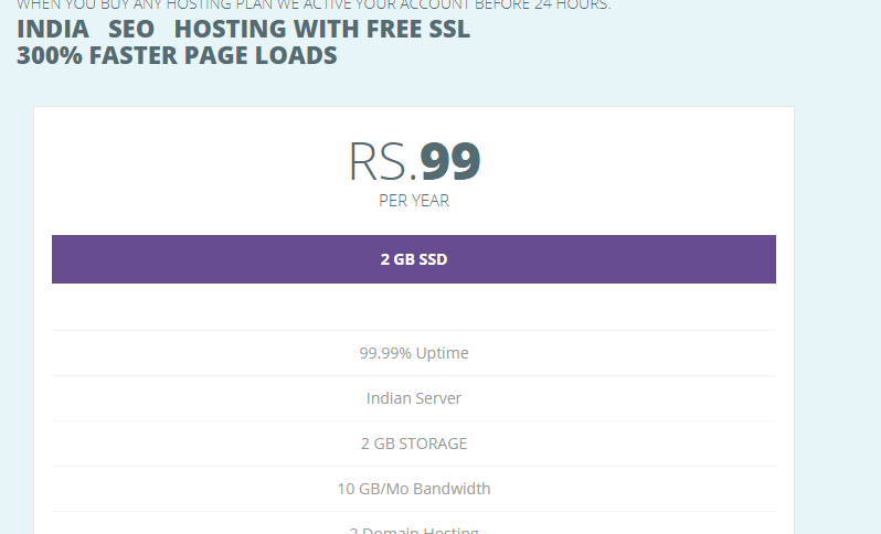 年額99ルピー、日本円で約200円です。月額換算17円です。 しかも、メモリ1GBで SSD2GB という高性能です。