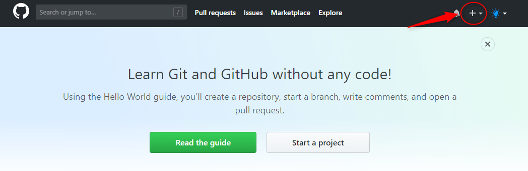 Githubにログインしている状態で右上の「+」ボタンを押します。