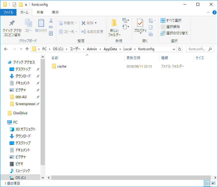 - C:\Users\●ユーザー名●\AppData\Local\fontconfigにcacheフォルダがある