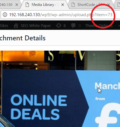 ギャラリーは、表示したい画像の「item」の番号を指定します。調べ方はメディアライブラリで画像を選択すると、URLに番号が表示されますので、それを使います。