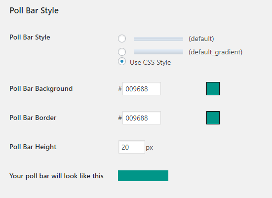 「WP-Polls」は、デザインがやや古めのデザインですので、気になる方は編集することをおすすめします。当サイトでは以下のように、バーの色を変更したうえで、追加のCSSを設定しています。