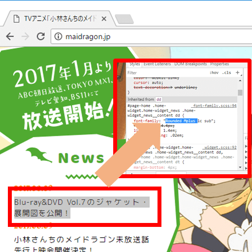 アニメの好きな方でしたら、よくご存じの株式会社京都アニメーション様。人気アニメの「小林さんちのメイドラゴン」の公式ホームページの一部に「Rounded M+」が使われています。