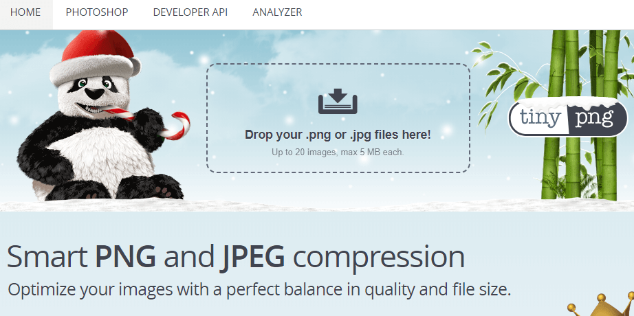 「TinyPNG / TinyJPG」は、画像サイズを大幅にダウンさせることのできるサイトです。トップ画面がパンダなので中華性と思いきや、運営会社はオランダとスウェーデンにある「Voormedia」という会社です。スウェーデンの技術者Simon Wahlstromさんがアムステルダム大学で行った研究がベースになっています。大手企業も採用している安心な画像圧縮サイトです。