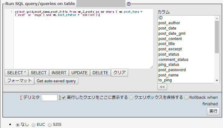 例えば、phpMyAdminでは以下のようにSQLクエリを入力します。