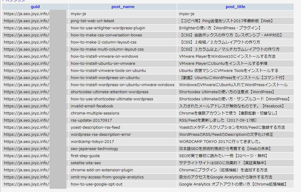 方法2:MySQLで記事URL一覧を取得する