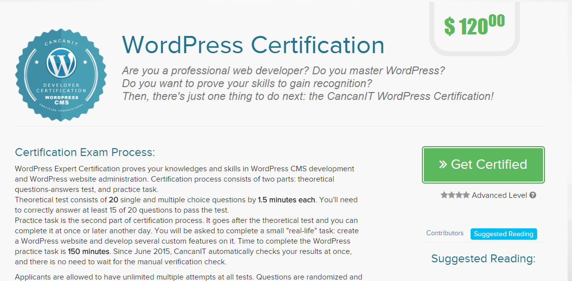 一番有名なWordPressの民間資格は、CanCanITが主催しているものかもしれません。日本語ではありませんので、受験される際はご留意ください。