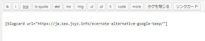 「Pz-LinkCard」は、「リンクカード」というボタンを押して表示されるショートコードで、リンクアドレスを挟めばOKです。