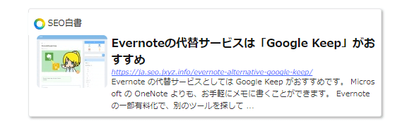 有料WordPressテーマの「賢威」にも同等機能があります。尚、「Pz-LinkCard」は無料ですので、「賢威」以外のテーマでもこのようなリンクを張ることができるようになります。