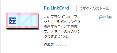 このようなリンクは、ポポロンさん制作の「Pz-LinkCard」というプラグインで作ることができます。