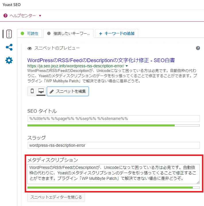 - Feedの出力プログラムを改良したYoastのメタディスクリプションの出力が最良策